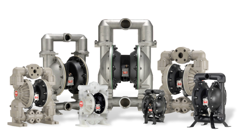* Vật liệu của thân bơm và màng bơm rất đa dạng: aluminum, cast iron, stainless steel, alloy C, polyethylene, polypropylene, PVDF, carbon-filled (acetal, polyethylene, Teflon®, PTFE) Teflon® PFA, and PTFE...
